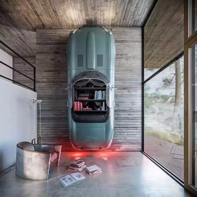 用汽車做書架、當壁燈
